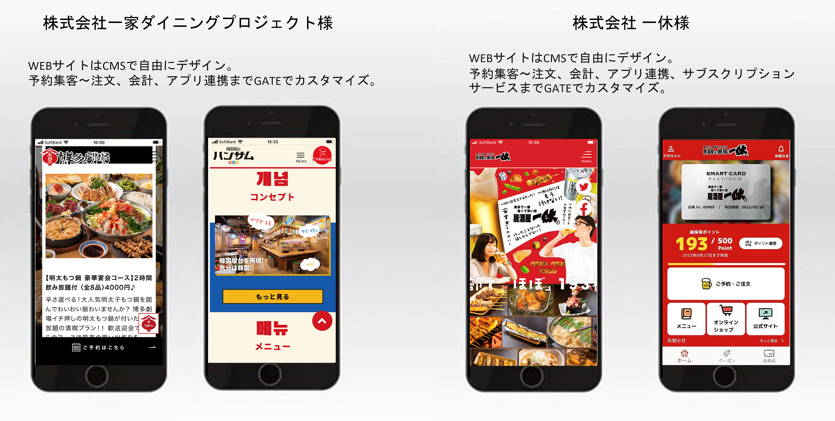 本サービスは、弊社が設立から10年間で蓄積したさまざまな飲食店向けWEB販促サービスのノウハウと、店舗DXのオールインワンツールGATEとを組み合わせて顧客との接点となる店舗LP(予約取得特化型ランディングページ、以下LP)を構え、LPからの予約取得、テイクアウト・デリバリー予約(モバイルオーダー)、店内利用時のモバイルオーダー、店舗利用後のメールやLINEを利用したリピーター機能まで一気通貫で提供します。また、複数のサービスを組み合わせたパッケージサービスでありながら、各企業に向けたカスタマイズ設計・自由なデザインを可能にし、飲食店独自の企業文化を活かすデザインと利用者目線での操作性を兼ね備えています。