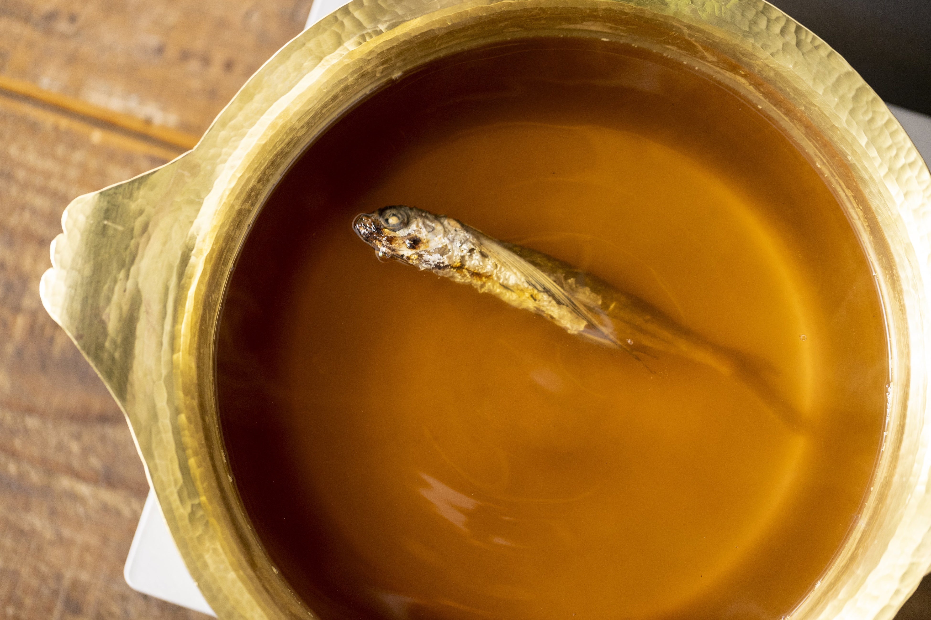 開発に1年以上を要し、独自の製法で「焼きあごの芳醇で上品な香り」の再現に成功した焼きあごだし。