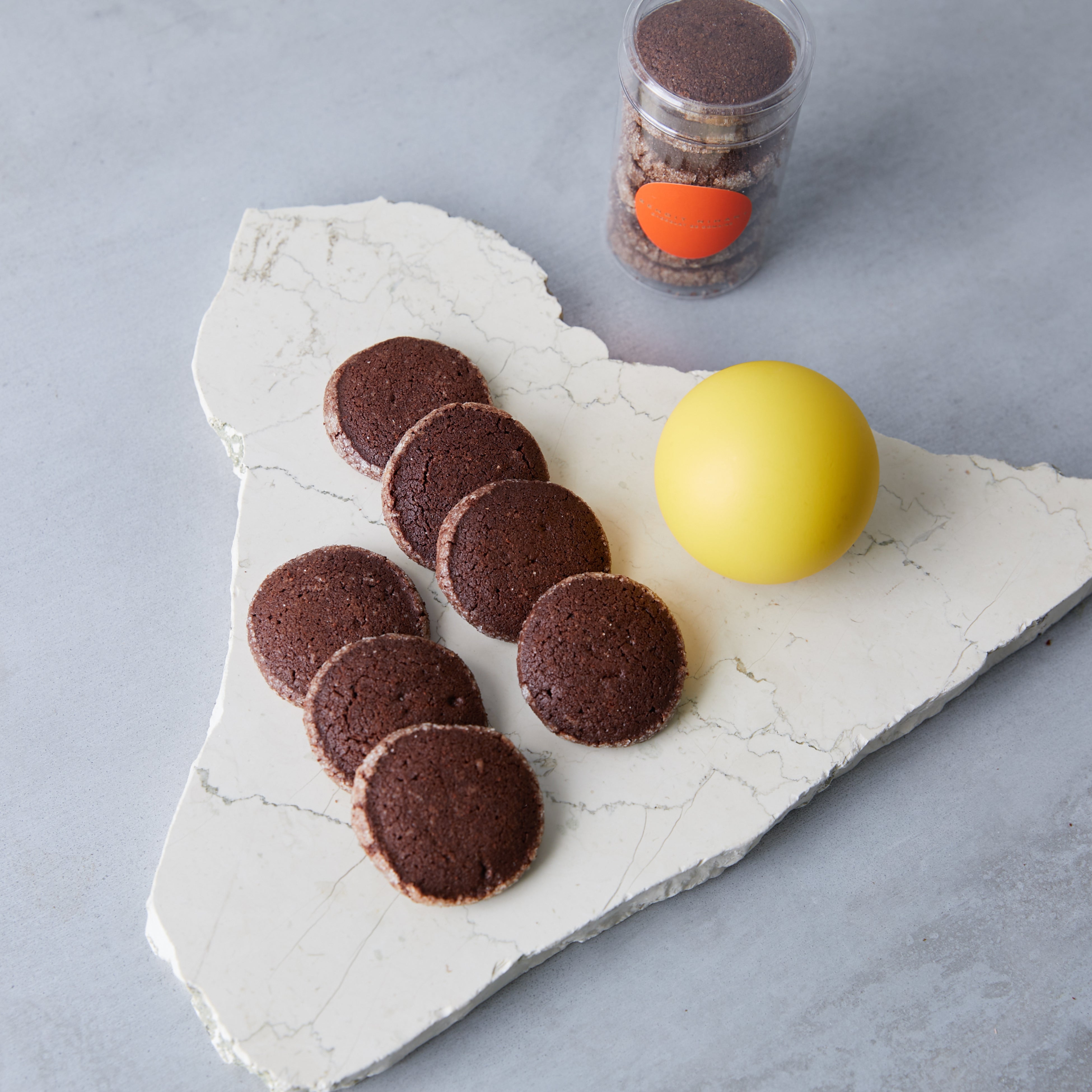 北海道産発酵バターや、カソナード、ゲランドの塩を使用し、低温で焼き上げ、カカオ本来の風味を大切にしたビスケットです。