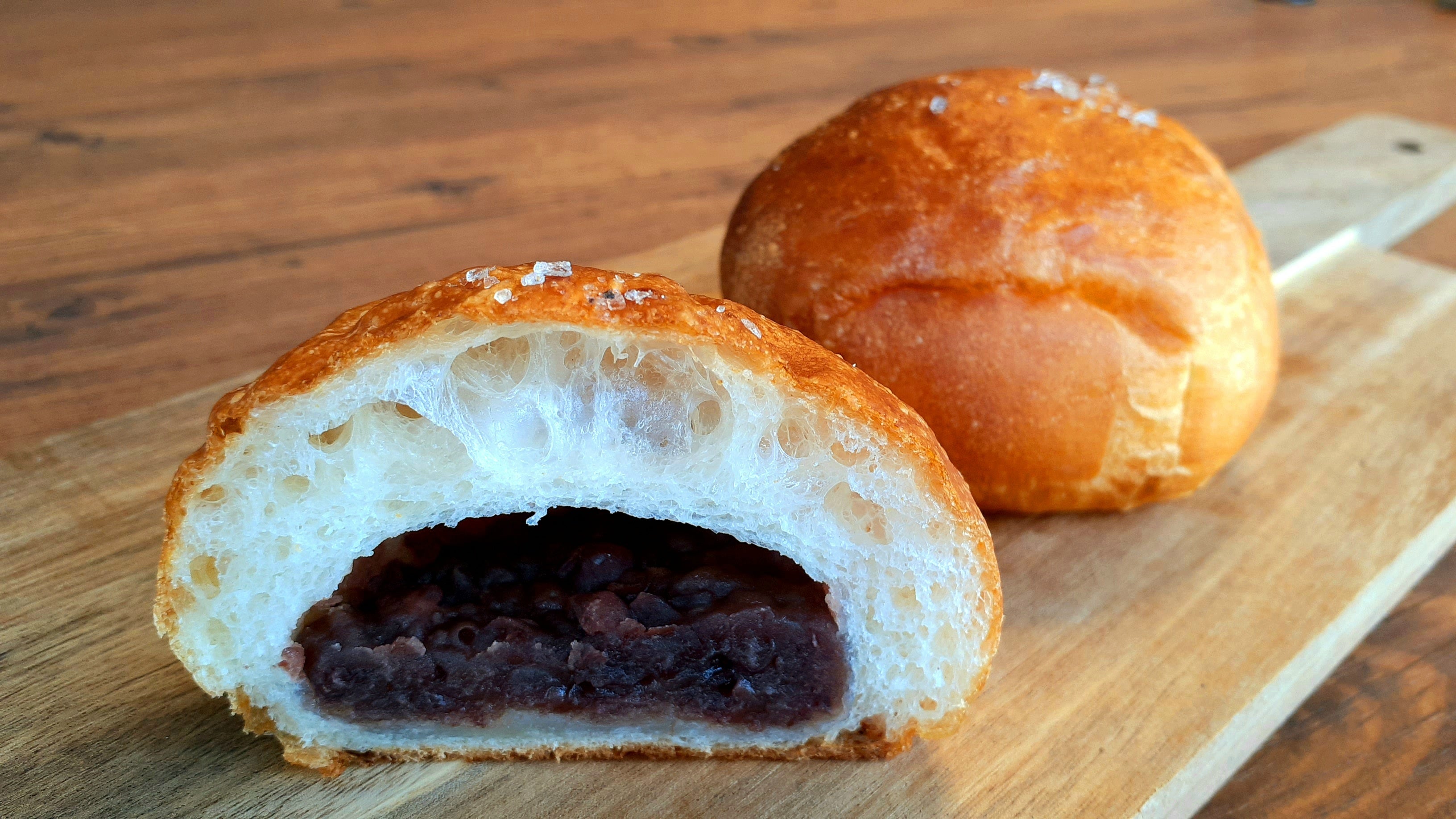 キタノカオリ100%使用した生地に北海道産有機小豆の粒あん。オリーブオイルと塩を効かせ、甘さ控えめのもっちりとしたあんぱんです。
