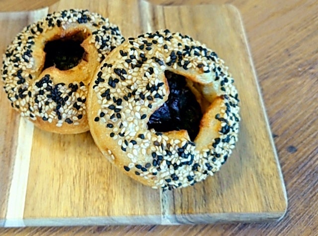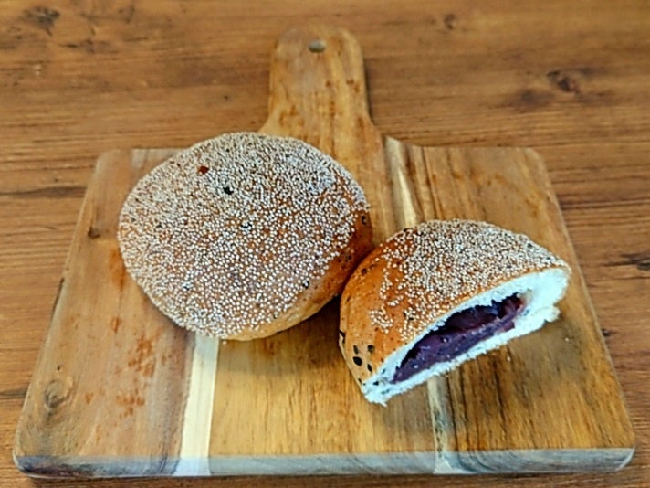 十勝産の粒あんに黒ゴマを練り込み、白ゴマでトッピングした生地がおいしいあんぱんです。