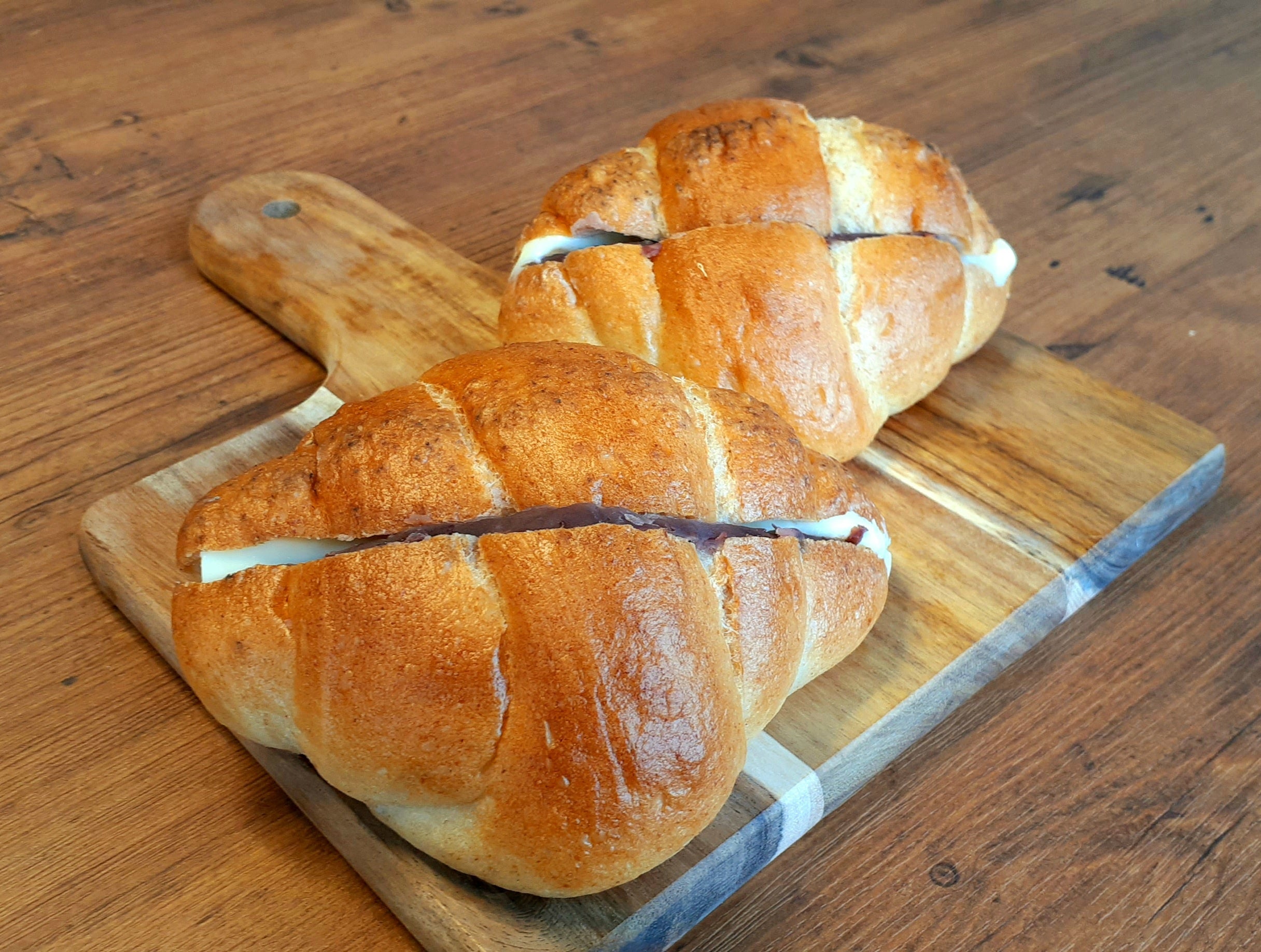 「塩ロールパン」に、北海道産小豆の粒あんとバターをはさみました。