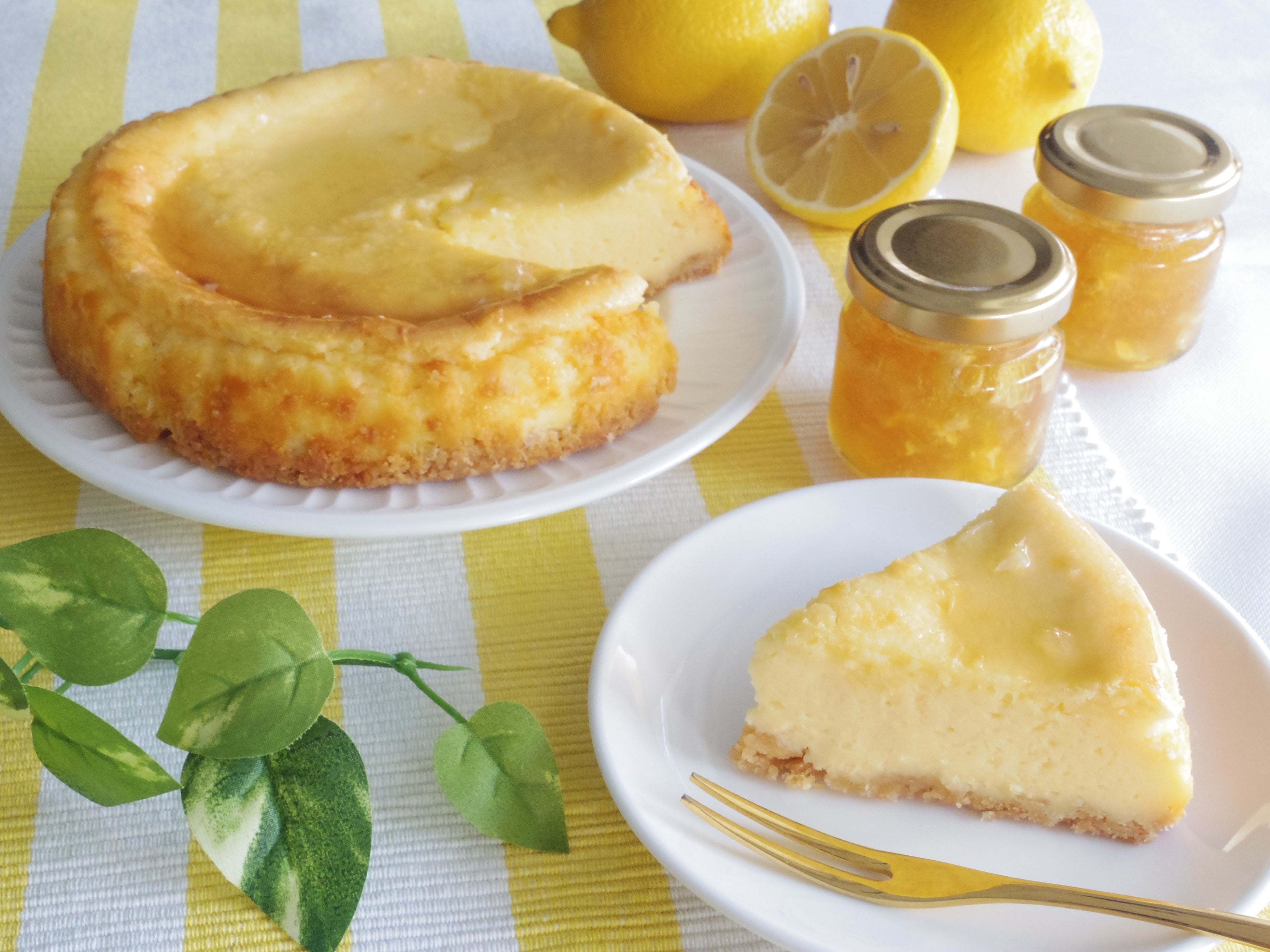 焼き上がったチーズケーキに手作りのはちみつレモンジャムをひと塗りすると、おいしさがワンランクアップします!