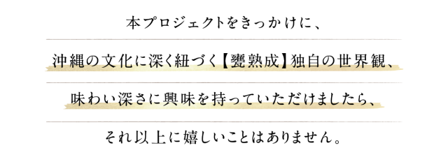 沖縄の自然や大地を感じながら、より深く古酒をお楽しみください。
