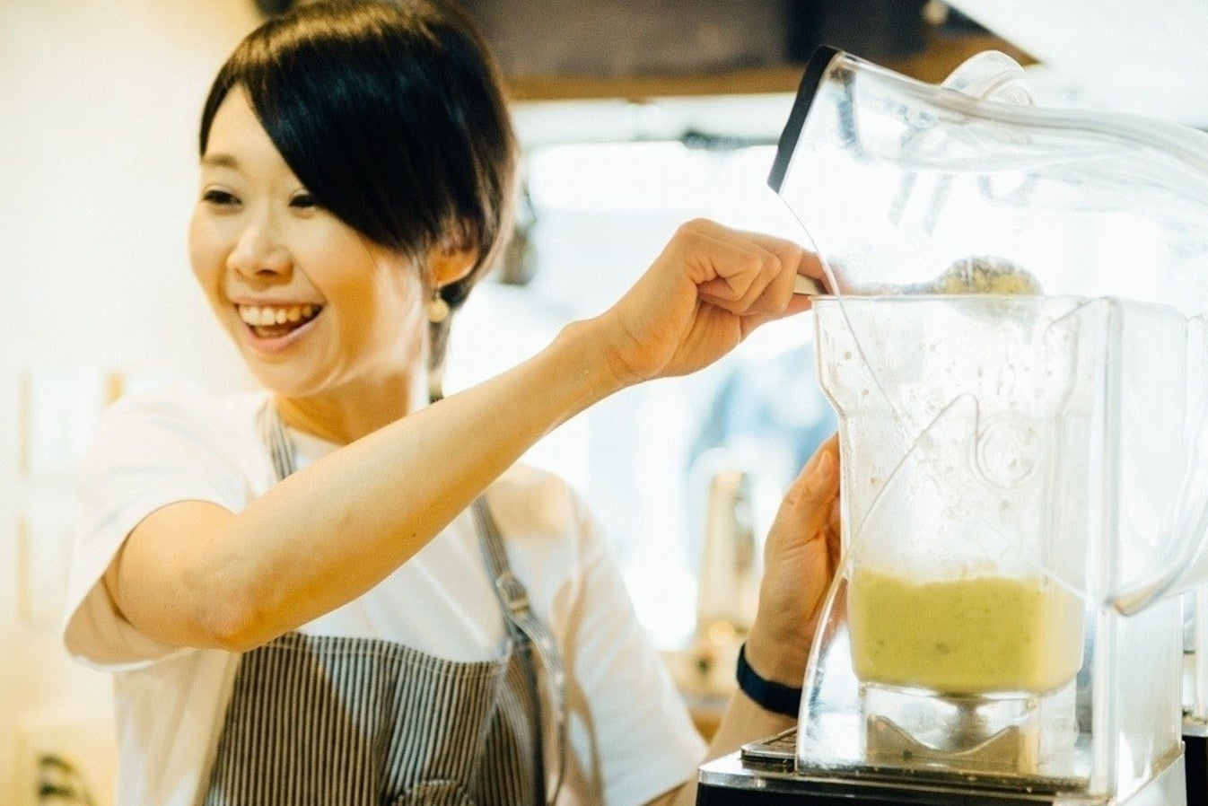 1975年生まれ、奈良県出身。学生時代に訪れたアメリカで「スムージー」に魅了されて、就職先の飲食企業をあっさり1年ほどで退社して、独自でスムージーの研究を始める。1998年当時、日本には、スムージーについての資料やレシピ本は全くなく、海外から取り寄せて和訳して、商品開発を毎日続ける。約1年後、自分自身が納得いく商品が出来上がり、1999年6月に奈良の春日大社に続く三条通りに1号店を開業。「この商品は、お客様も喜んでくれる!!」と意気込んでいたが、案の定、お客様には「スムージーって?何?」という状況で見向きもされず、悩む日々を送る。それでも「悩んでいても始まらない!」と思い、奈良県はもちろん全国各地の農家さんを訪ね、こだわりの果物を探し続け、関係を築いていく。今では農家さんだけではなく、県や市からもPRしたい果物や野菜でレシピ開発、是非店舗で使ってほしいという依頼がたくさん来るようになる。ようやく、2012年頃から日本でスムージーが認知されるようになると、自信のあったスムージーをこだわり続づけた結果、テレビ・ラジオに出演、新聞や雑誌に掲載、更には、自身初の著書「人気カフェのスムージーが自宅で作れる!簡単レシピ122(主婦の友社)」を出版(現在、14刷で6万部を超える)、全国からお客様が足を運ぶ人気店に。近年では阪神百貨店梅田本店、阪急百貨店うめだ本店の催事にもお声かけ頂けるようになり、店舗以外でもドリンクドランクのスムージーファンを楽しませている。現在、奈良、京都清水産寧坂の3店舗の運営を行い、22年間で約26万杯以上作り続けている、正真正銘の”スムージー番長”です。