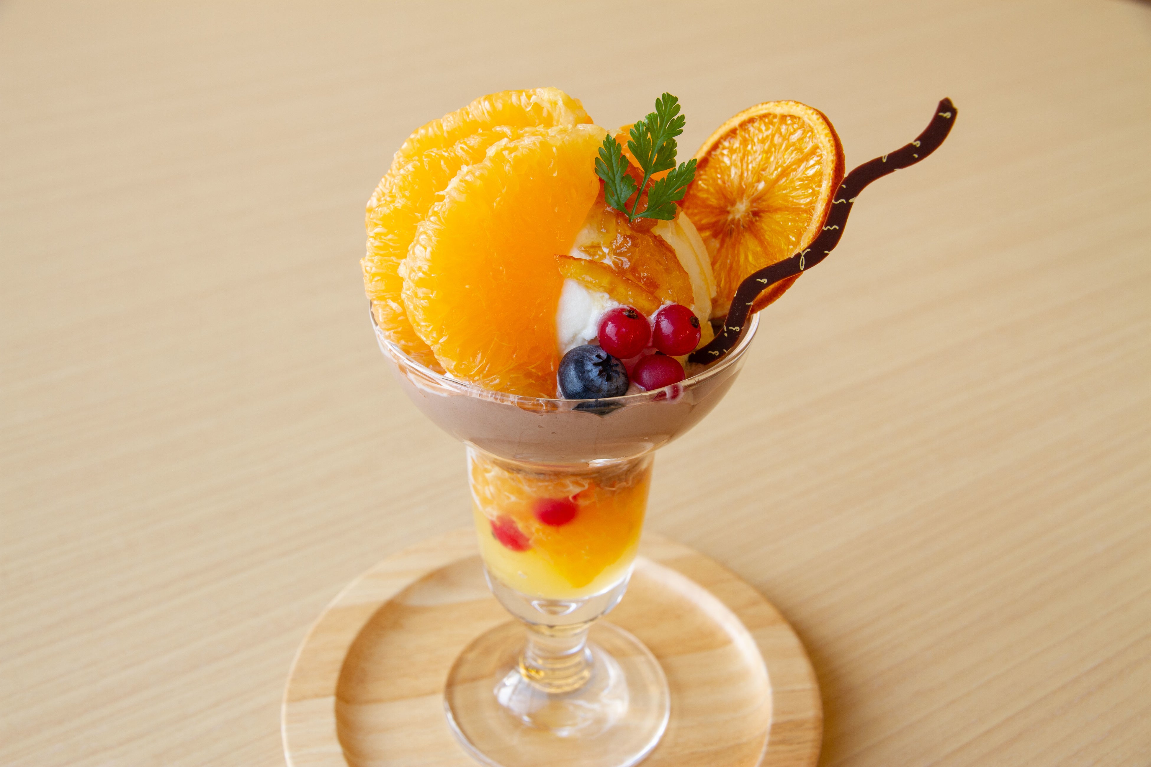 甘酸っぱくジューシーなデコポンをふんだんに使用したパフェ。チョコクリームやバニラアイスの甘みとも相性抜群です!