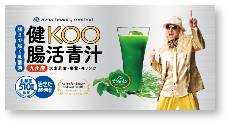 またエイベックス・エンタテインメント株式会社(以下エイベックス)のライフスタイル事業部avex beauty methodが掲げる「楽しんでいる人は、美しい。」というコンセプトを基軸に、さらに過去に脳動脈瘤を患い、昨年還暦を迎えたDJ KOOさんを掛け合わせ、毎日頑張っている現代人の健康を応援しサポートすることを目指し商品開発を行いました。
