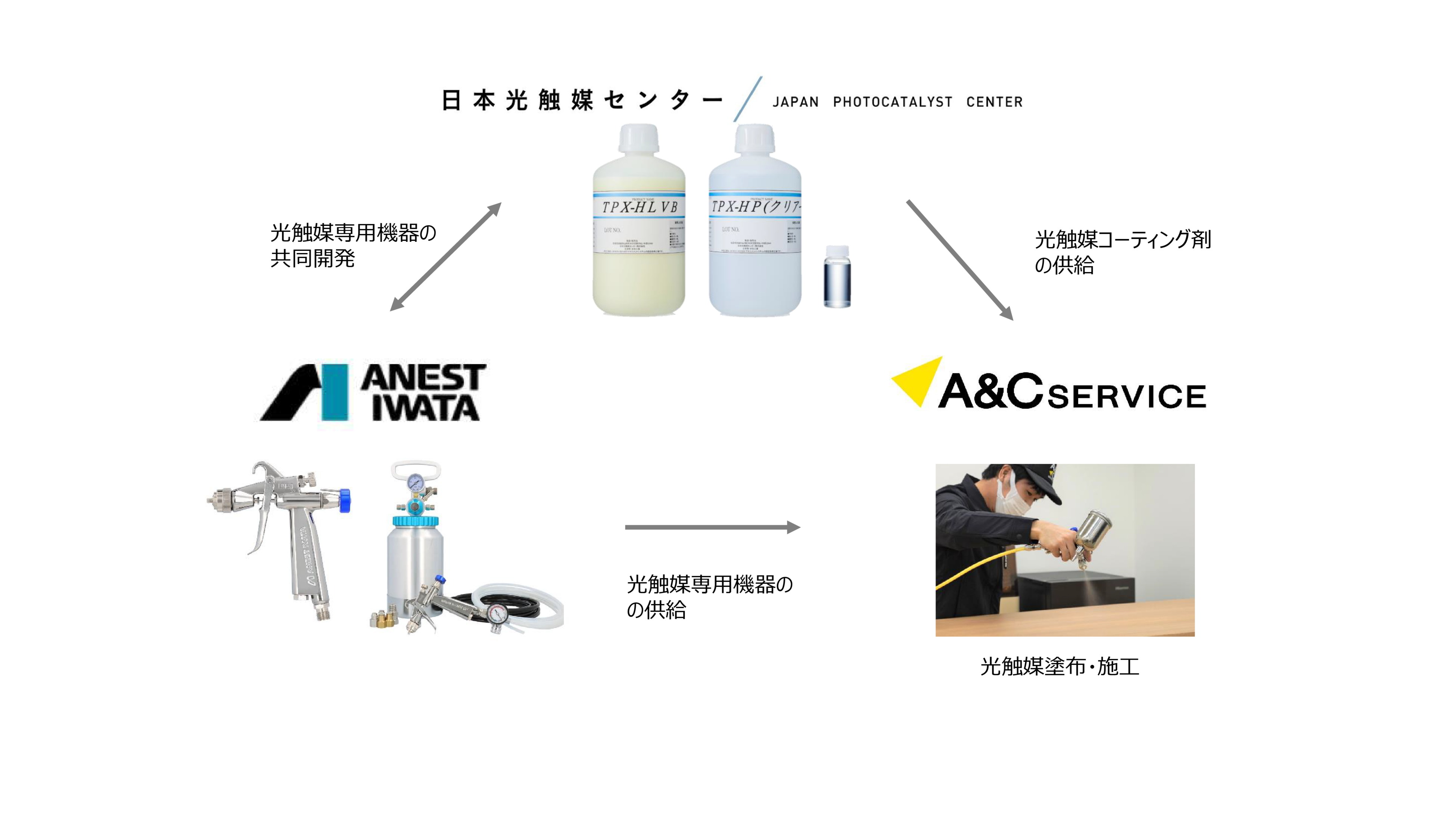 また、日本光触媒センターは、自社開発で長年の実績を誇る光触媒をA&Cサービスに供給し、同社は光触媒施工ビジネスを展開します。
