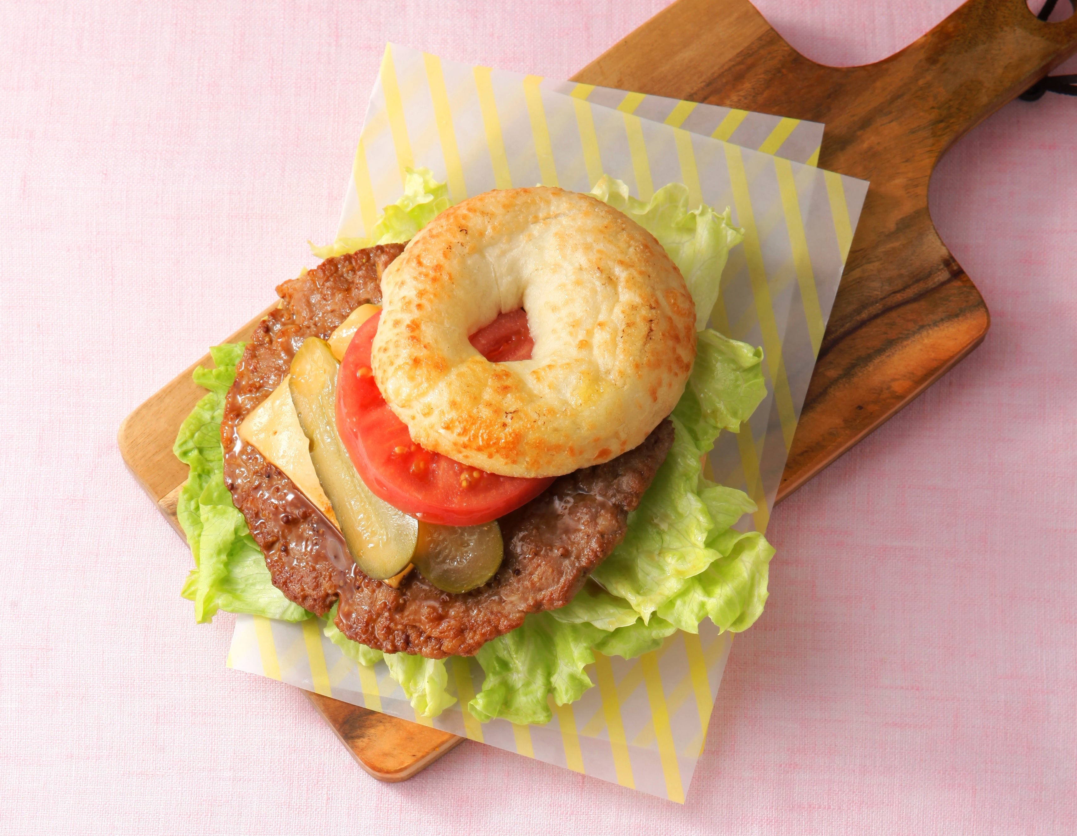 旨みが強く脂はさらっと上質な、ハンガリーの国宝とも呼ばれるマンガリッツァ豚を100%使用。ビッグサイズのパティをチーズベーグルで挟んだ、本店で人気のメニューです。