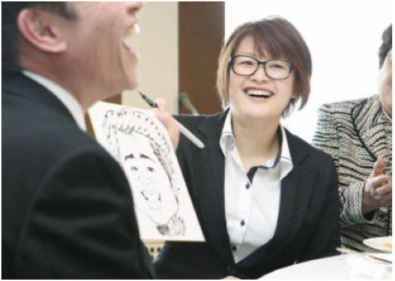 似顔絵LIVEは、描かれる側も見る側も、全員が楽しく参加できるプログラム。職位や年代関係なくスポットライトが当たり、とても盛り上がります!