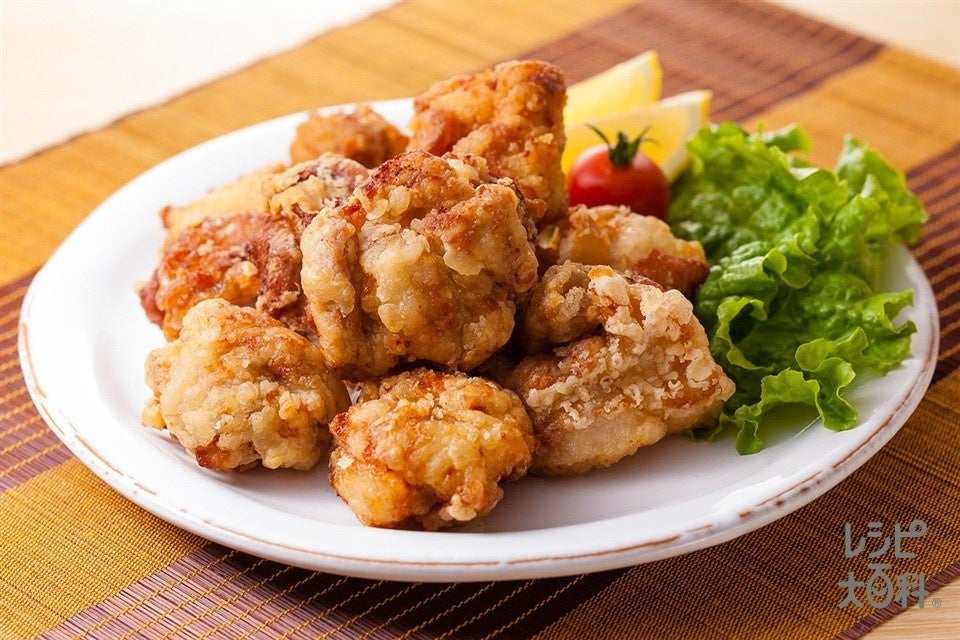 ●鶏⾁にマヨネーズをもみ込んで作る、柔らかジューシーな「唐揚げ」