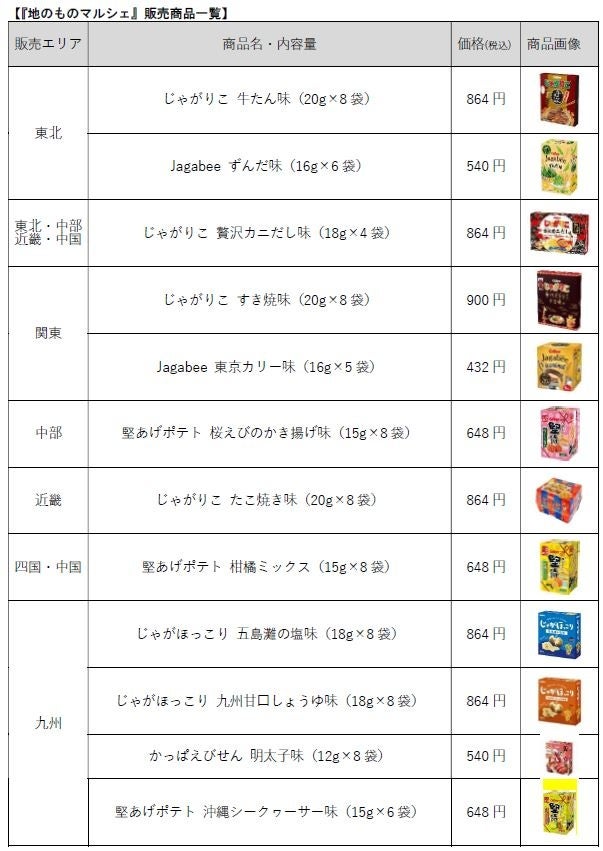 カルビー株式会社(本社:東京都千代田区、代表取締役社長:伊藤 秀二)は、地元に根差した産品や知る人ぞ知る味などを商品にして販売し、地域の食文化の発展に貢献したいと、2022年3月31日(木)から、公式オンラインショップ「カルビーマルシェ」にて『地のものマルシェ』をスタートさせます。