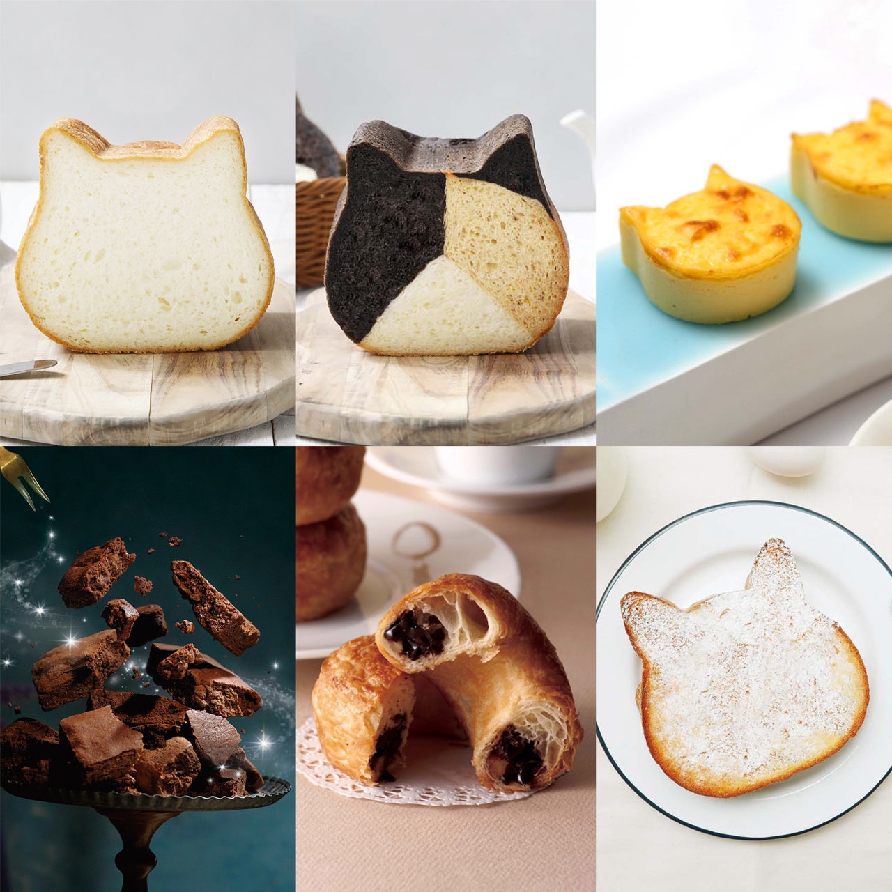 ・内容:ねこねこ食パン プレーン1個、ねこねこ食パン 三毛猫1個、ねこねこフレンチトースト2枚、ベイビーリング1袋(3個入り)、にゃんチー1箱(4個入り)、世にもおいしい割れチョコブラウニー1袋、チョコペン2本