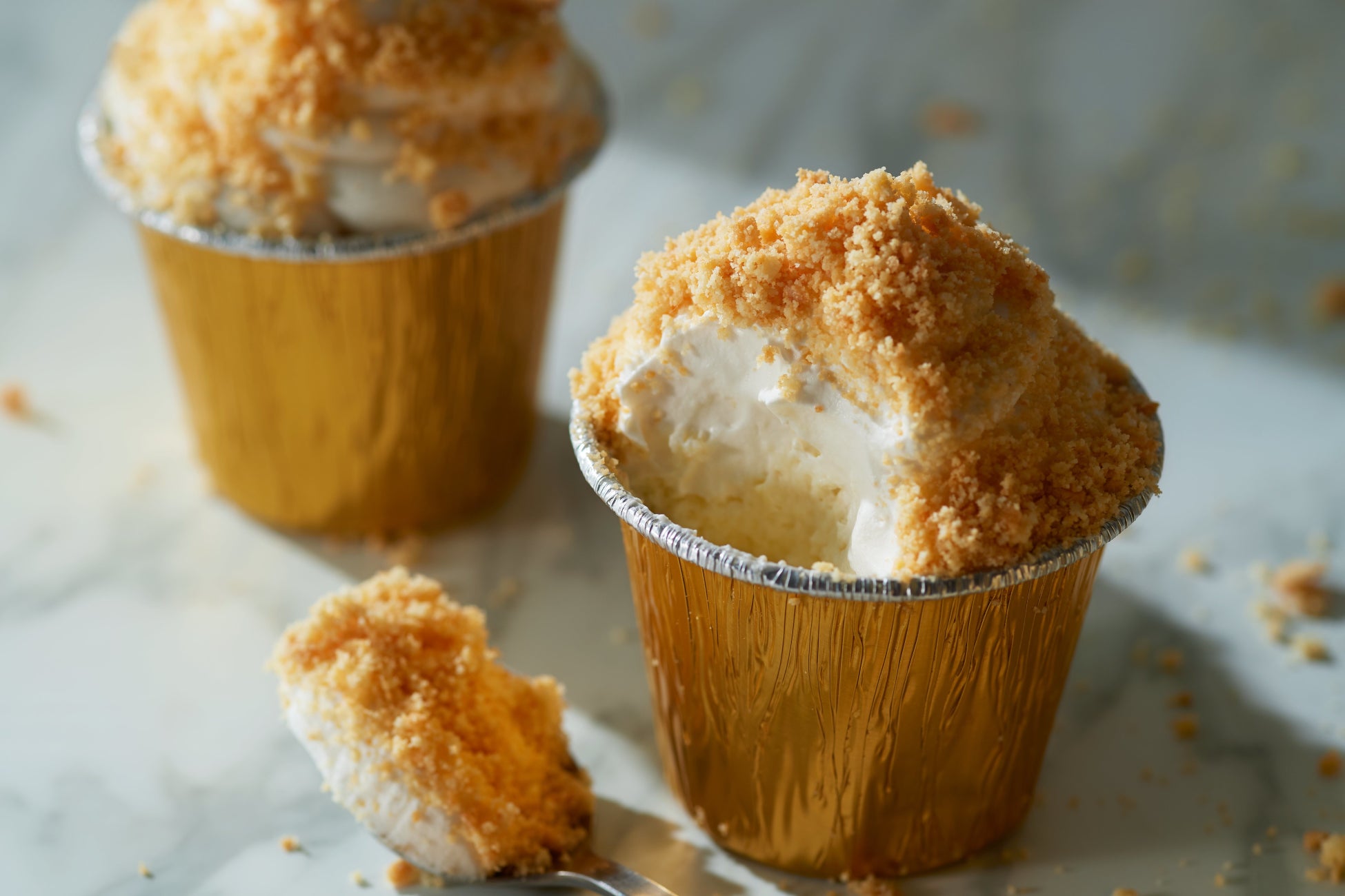 2種のチーズクリームをチーズクッキーシューでサンドしたツインチーズシュークリームです。一番人気のチーズクッキー「ゴーダ&チェダー」生地をシューと一緒に焼き上げ、カマンベールカスタードとあっさりとしたクリームチーズシャンティを絞りサンドし、はちみつジュレをトッピング。
