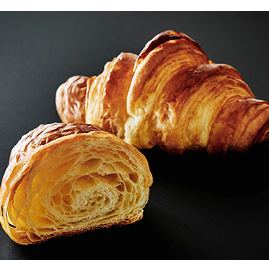 プレミアムクロワッサンの食感のひみつは、3×4=12層に折り込まれた生地にあり。焼き上げられた生地は、層と層の間に絶妙に空気を含むことで、口に入れた瞬間の「ザクッ」とした食感が生まれ、フランス産高級発酵バターの芳醇な香りが「フワッ」と広がります。