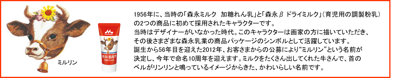 ②パッケージデザインには、当社の「森永ミルク 加糖れん乳」のキャラクター“ミルリン”をデザインし、安心感と懐かしさをお届けします