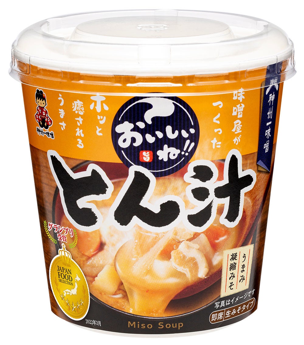 当社の『おいしいね!!』シリーズはリニューアル以前よりご好評頂いており、昨年1年間の実績もカップが前年比108%※、3食シリーズが前年比117%※(※ともに自社実績に基づく)と非常に好調に推移しております。中でもとん汁は当社の看板商品として、長くお客様に愛されてまいりました。