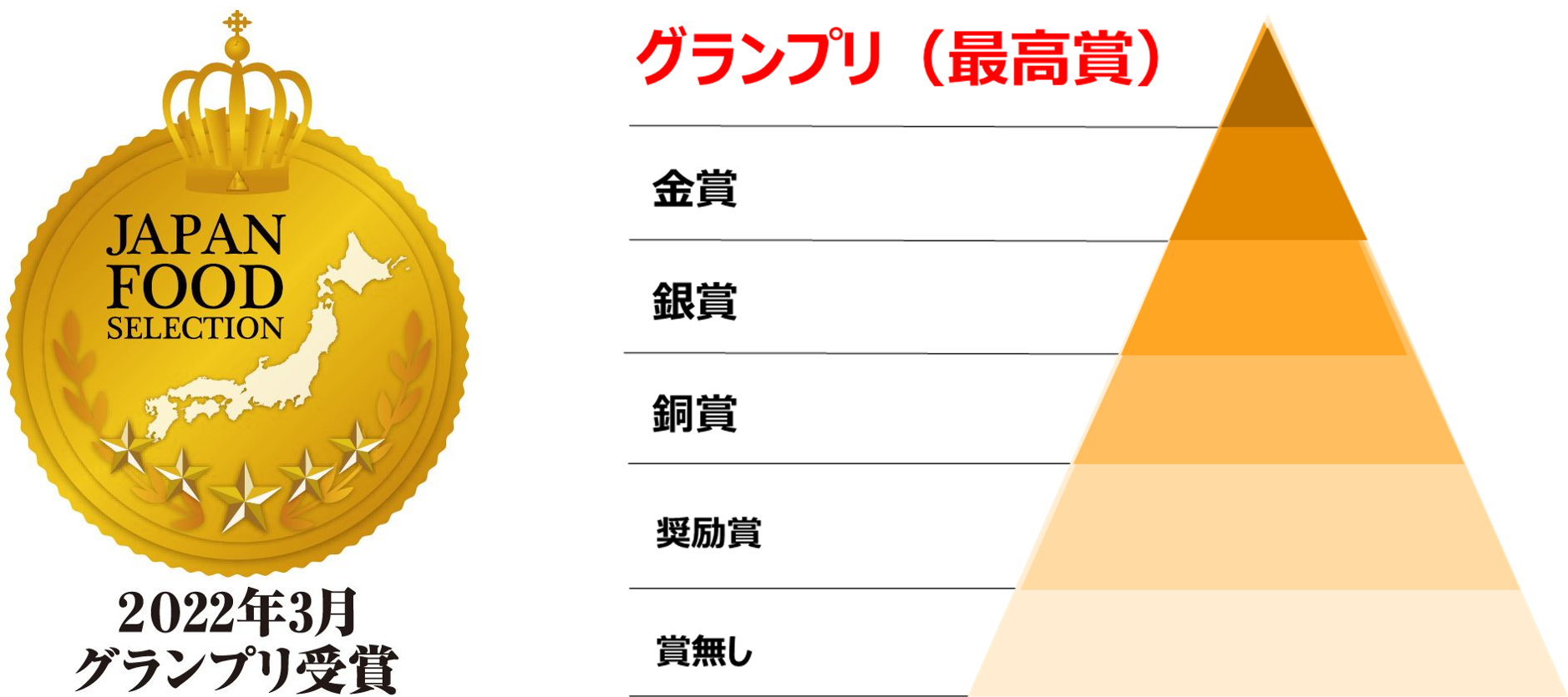 (社)日本フードアナリスト協会が主催する日本初の食品・食材評価制度です。専門家であるフードアナリスト2万人以上が審査に関与し、味わいだけでなく、商品の話題性やパッケージ、安全性など 100 もの項目について厳密に評価し賞を決定します。「グランプリ」はそのなかで最高評価の賞です。