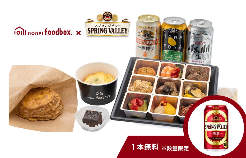 “日本全国に料理と飲み物を1箱にしたフードボックス”をお届けする『nonpi foodbox™』を展開する株式会社ノンピ(本社:東京都千代田区、代表取締役社長 :柿沼寛之)は、指定の5つのプランをご注文のお客様に2022年4月3日(日)お届け分から期間限定 で「スプリングバレー 豊潤<496>」を1本無料でお届けするキャンペーンを実施します。