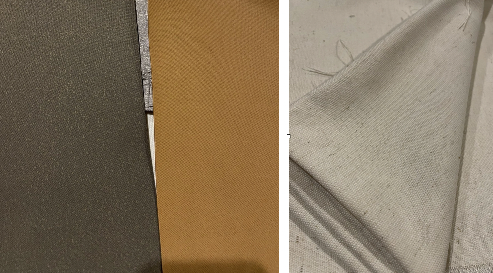 参考写真:現在開発中のココナッツレザーの試作品(左)、パイナップルから作られた布地(右)