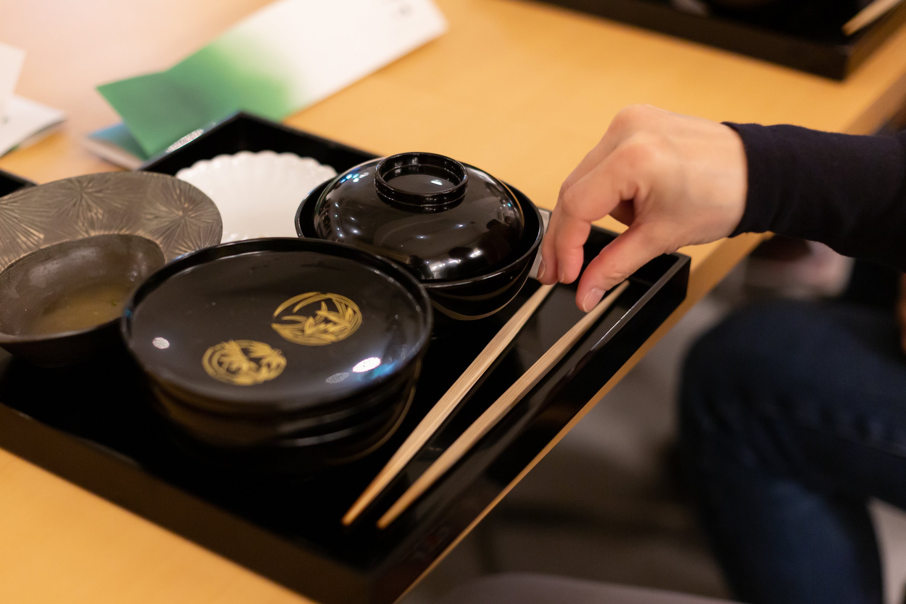 参加者の方々には、懐石の楽しみ方が早わかりするオリジナルイラスト箸入れがプレゼントされました。
