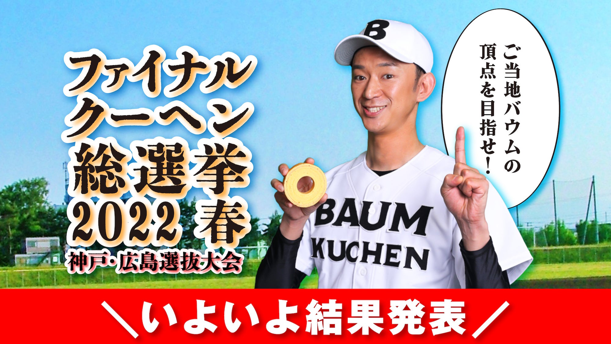 バウムクーヘン博覧会実行委員会(株式会社ユーハイム内:神戸市中央区港島中町7-7-4、代表取締役社長:河本英雄)は、2022年3月2日(水)~3月7日(月)@神戸阪急、2022年3月16日(水)~3月22日(火)@そごう広島のバウムクーヘン博覧会内で「ファイナルクーヘン総選挙2022春 神戸・広島選抜大会」を実施。初の2会場同時開催でおこなわれた1ヶ月にわたる熱き戦いの結果を発表します。