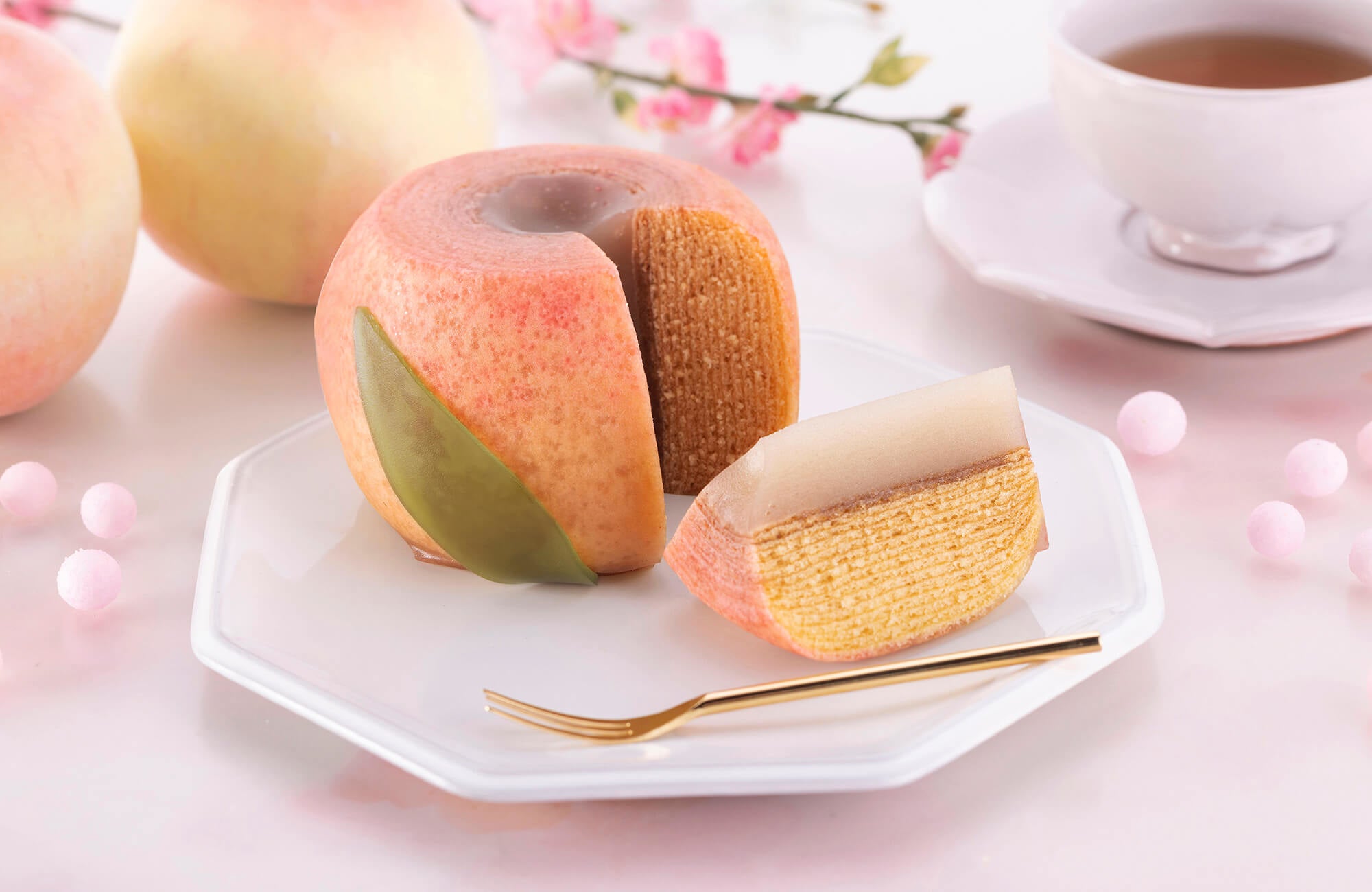 桃そっくりな桃の形のバームクーヘン。 桃のフルーティさを表現するために「桃のフルーツ羊羹」を流し入れました。 「桃のフルーツ羊羹」は新鮮な完熟白桃のピューレを生かした羊羹です。 バームと共にお召し上がりいただくことで、フルーティな完熟白桃の味をお楽しみいただけます。