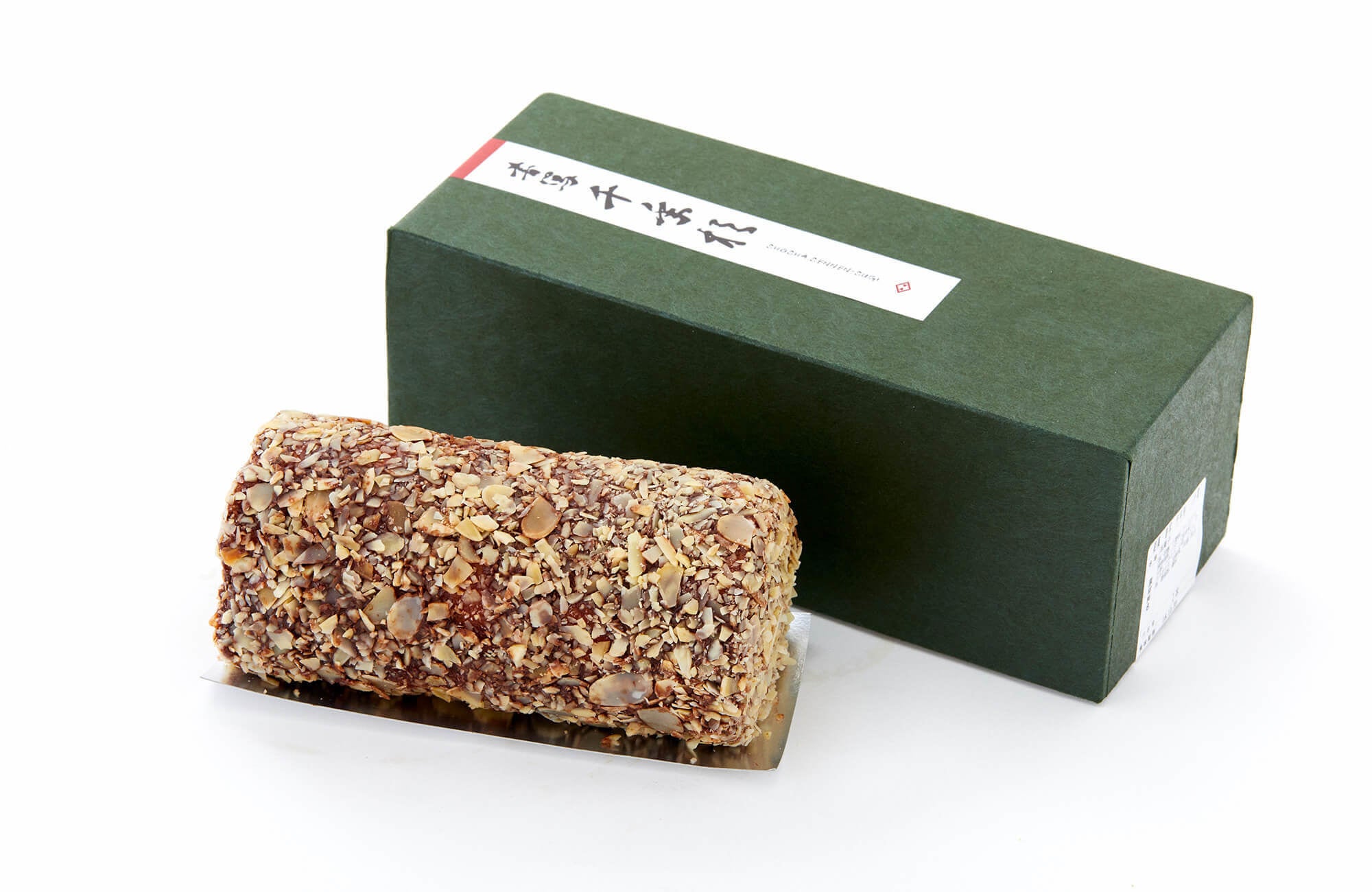書写山円教寺境内の樹齢千年とも言われる杉の大木を御菓子にしました。ふんわりバウムの中心に小倉クリームと、外側をチョコとナッツでコーティングしたオリジナル創作バウムクーヘンです。