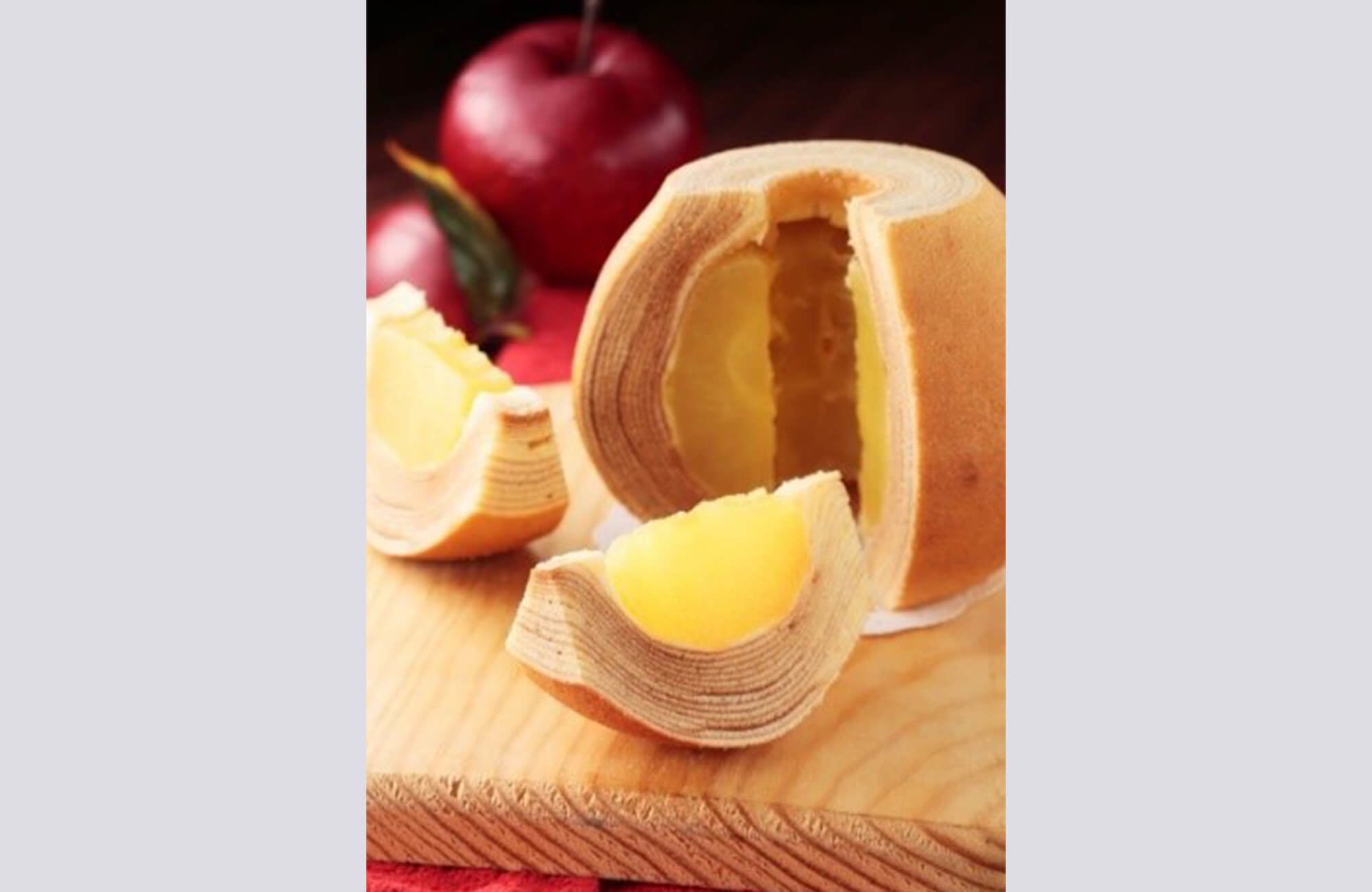 リンゴを丸ごと1個をシロップに漬けこみ、新鮮たまごをたっぷりと使ったバウムクーヘン生地をやさしくかけながら、一層一層丁寧に焼き上げました。