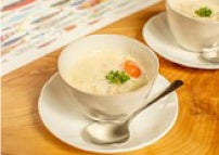 こだわりの牛乳と生クリームで作った、無添加の自家製ベシャメルソースが自慢の一品。近隣でとれた野菜をたっぷり入れたクリームシチューです。ホッとするような素朴な味わい、どこか懐かしい家庭の味を表現しました。