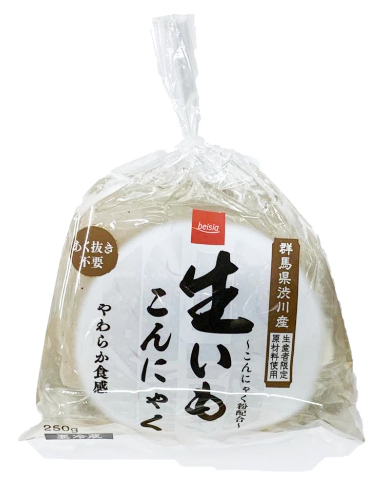 株式会社ベイシア(本社:群馬県前橋市、代表取締役社長:橋本浩英)は、グリンリーフ株式会社(本社:群馬県利根郡昭和村、代表取締役:澤浦彰治、以下「グリンリーフ」)との共同開発商品「生いもこんにゃく」を、4月2日(土)よりベイシア全店にて新発売いたします。「こんにゃく本来のおいしさを知ってもらいたい」という両社の想いから、昔ながらの農家の手作りに近い画期的な製造方法を開発。癖が少なくやわらかな食感を実現しました。まずは刺身こんにゃくで、また味の染み込みも良いので、ピリ辛炒めやおでん、こんにゃくステーキなど、さまざまな料理でお楽しみいただけます。