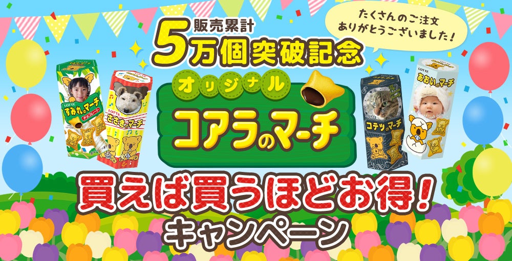 株式会社ロッテ(本社:東京都新宿区)は、世界で一つだけのコアラのマーチを作成し購入できるサービス「オリジナルコアラのマーチ」販売累計5万個突破を記念し、2022年4月11日(月)10時よりロッテグループ公式オンラインモールにて、『みんなでオリジナルコアラのマーチになろうキャンペーン』『オリジナルコアラのマーチ買えば買うほどお得!キャンペーン』を開催いたします。