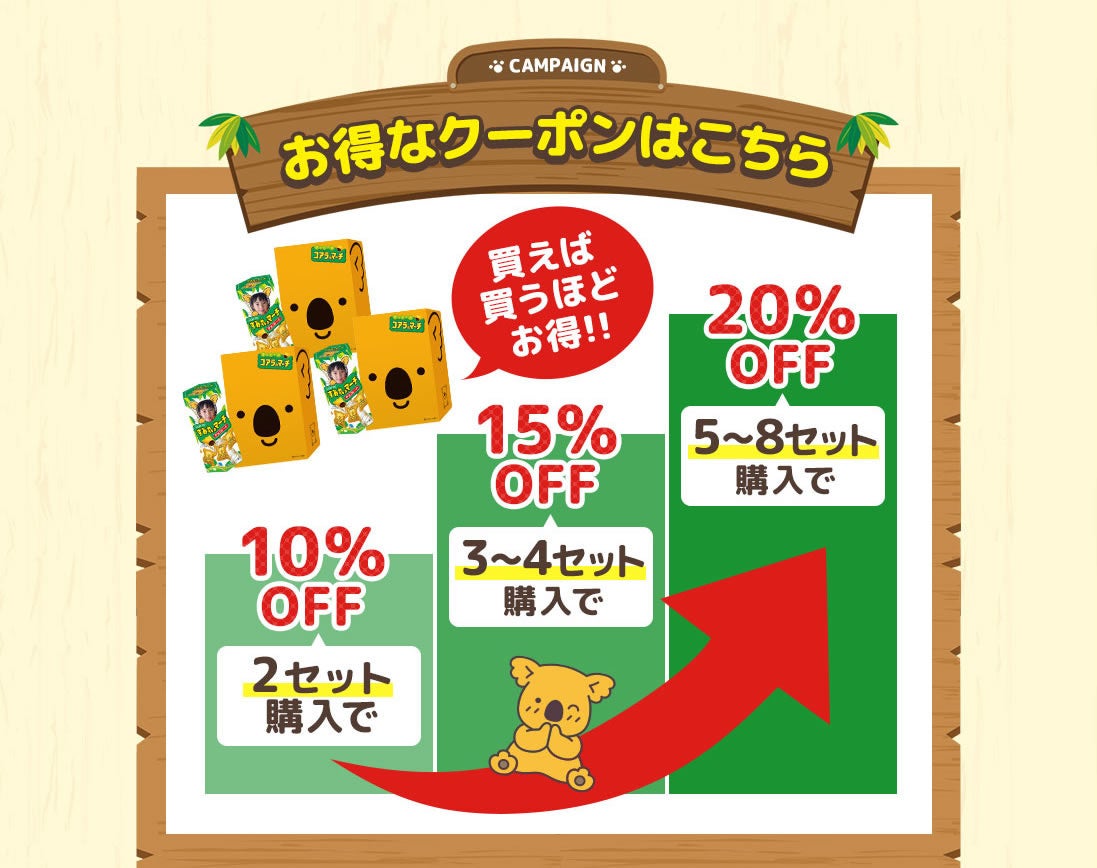 ・キャンペーン期間中にクーポンを使用いただくとお得な割引率でオリジナルコアラのマーチをご購入いただけます