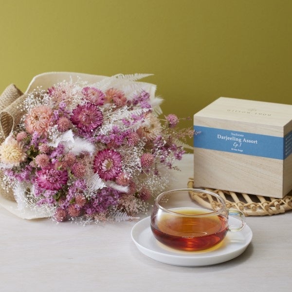 ギフトセット②Ep.1 Darjeeling Assort 10TB 木箱 × TidaFlowerのドライフラワースワッグ。