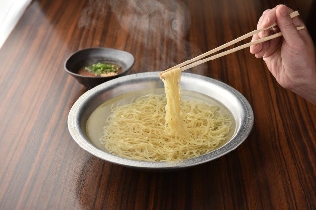 ジンギスカンで使用したタレにほうじ茶を入れて「出汁割り」をつくり、つけ麺スタイルでいただきます。これがまた美味い!必ず〆で食べて頂きたい1品です!