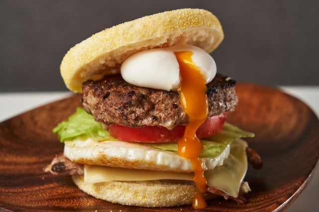 バーガーもあるならマフィンもあってもいいでしょ!という事で開発した商品。自家製ソースと半熟卵を絡めてお召し上がり下さい。