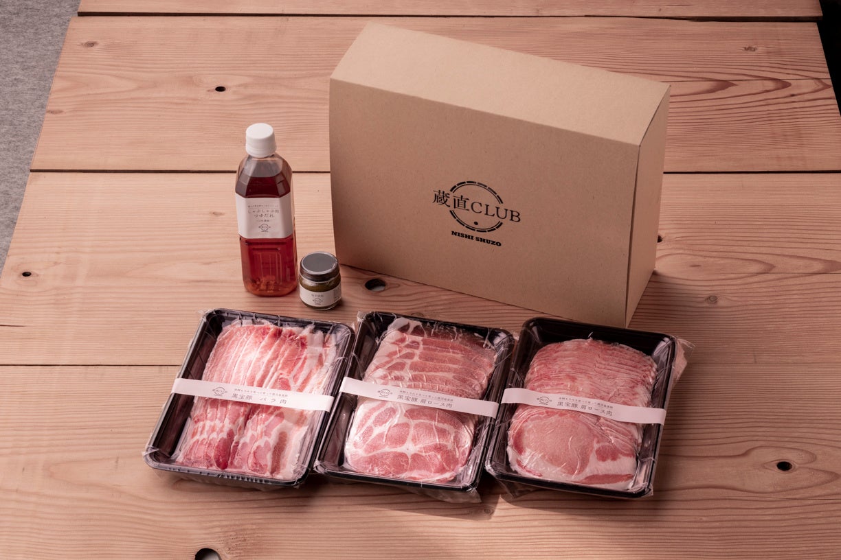 更に、「蔵でしか味わえないものをお客様へ直接お届けしたい」といった想いから、2022年3月より蔵直CLUBの「食」として西酒造オリジナルブランド黒豚「黒宝豚」の商品や甘酒、天然水などの販売を開始しております。