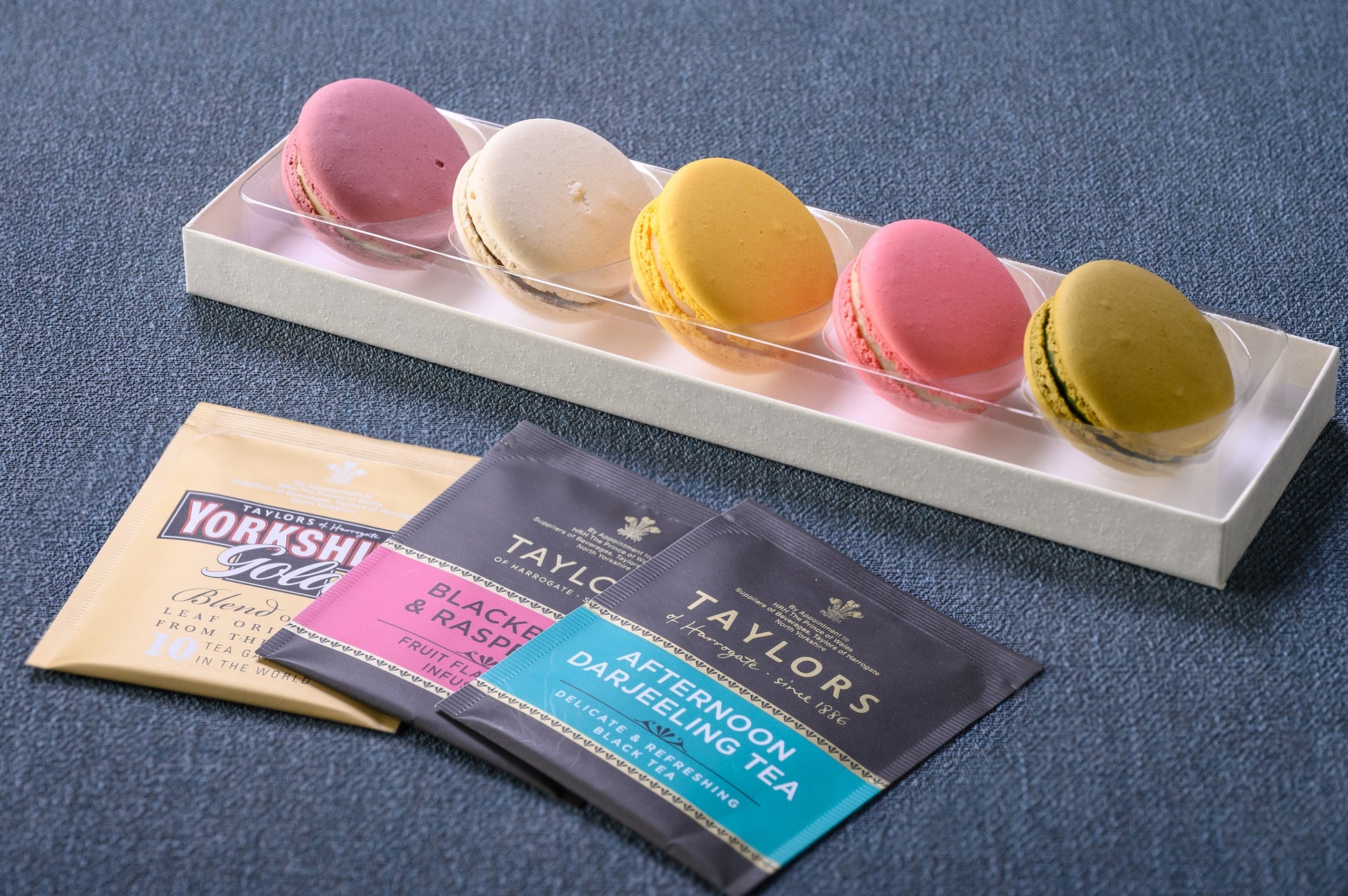 ご自宅用や、手土産など気軽にご利用いただけるよう、英国王室御用達ブランド「テイラーズ オブ ハロゲイト」の紅茶もセットにてご用意いたします。自分へのご褒美にも最適です。