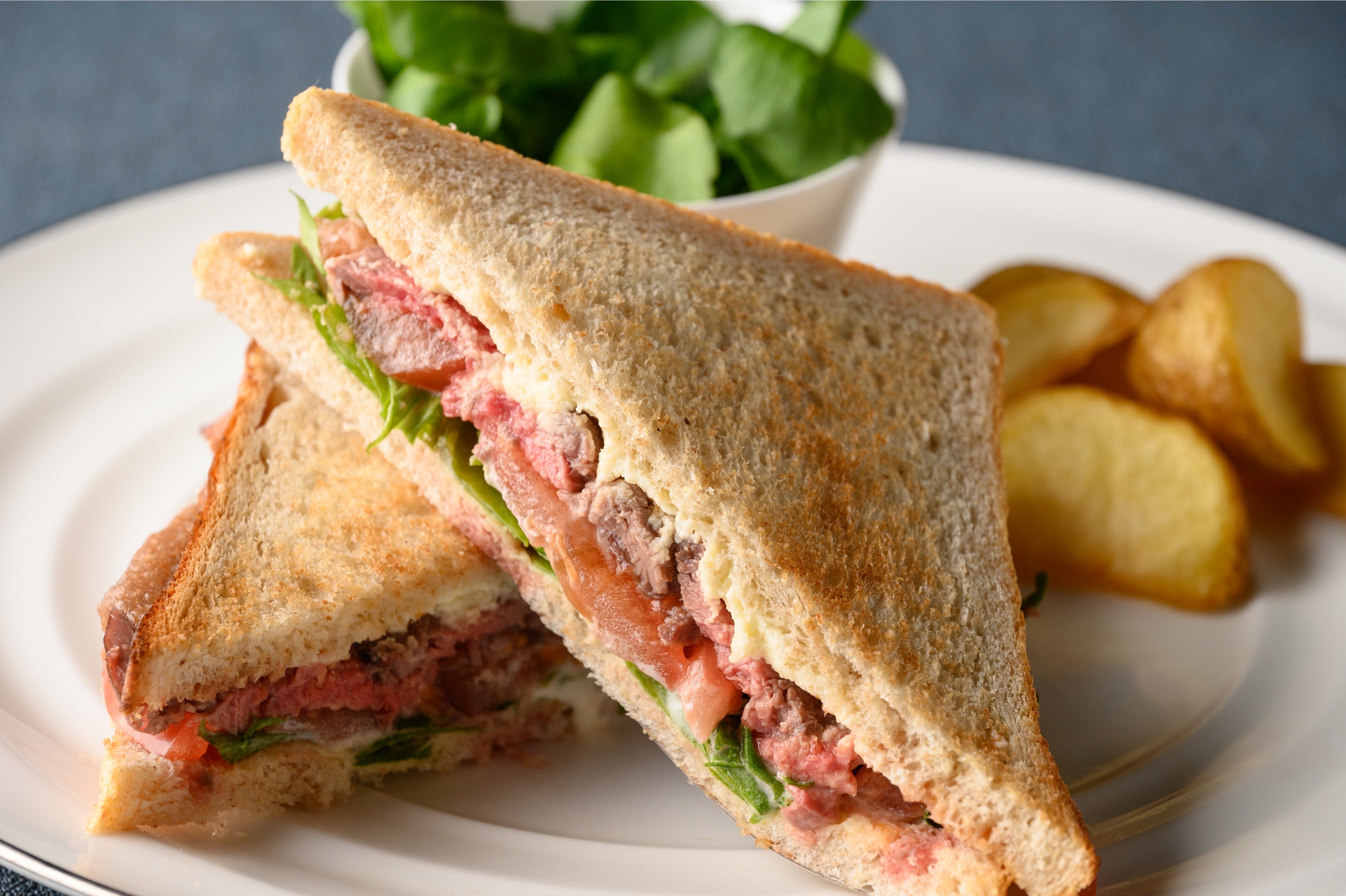 伝統的なイギリス料理のひとつ「ローストビーフ」をちょっと贅沢なサンドイッチに仕上げて提供いたします。