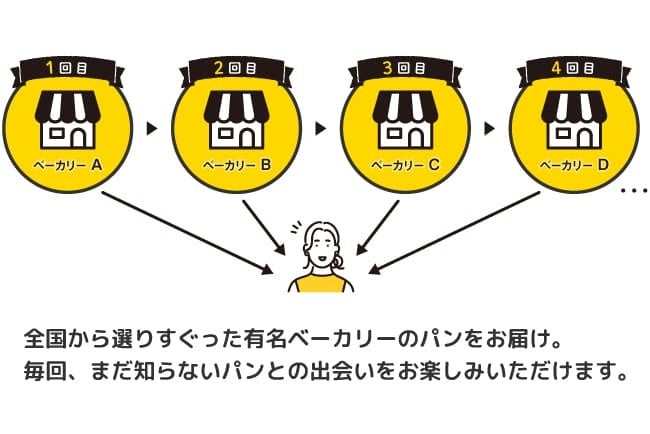 パンの定期配送サービス「めりぃなパンマニア」は、参加ベーカリー58店舗(2022/4/1現在)より、選りすぐりのパンをお届けします。毎回異なるベーカリーから届く、新しいパンとの出会いをお楽しみください。