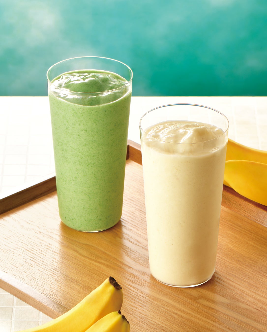 ■「フレッシュバナナのグリーンスムージー〜ほうれん草&アボカド〜」(左) ¥520〜