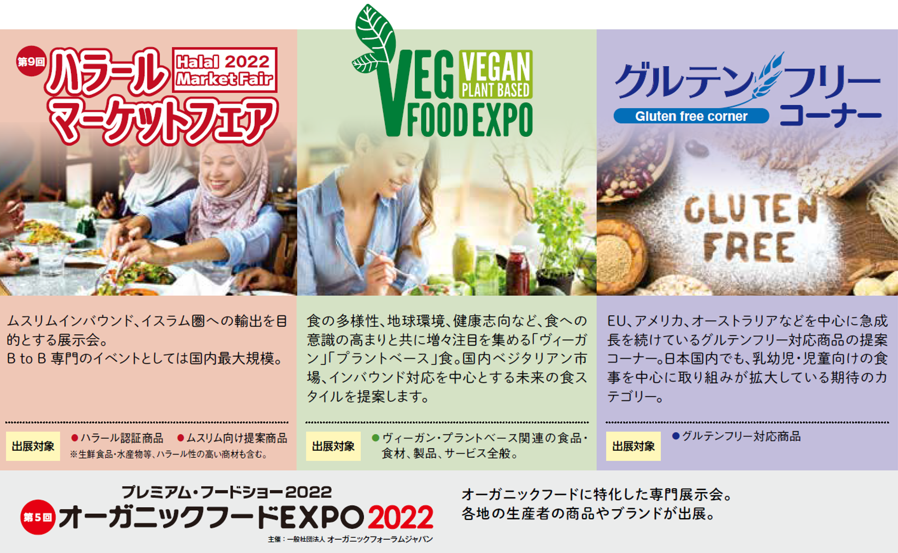 ベジフードEXPO、ハラールマーケットフェア、オーガニックフードEXPO、グルテンフリーコーナー