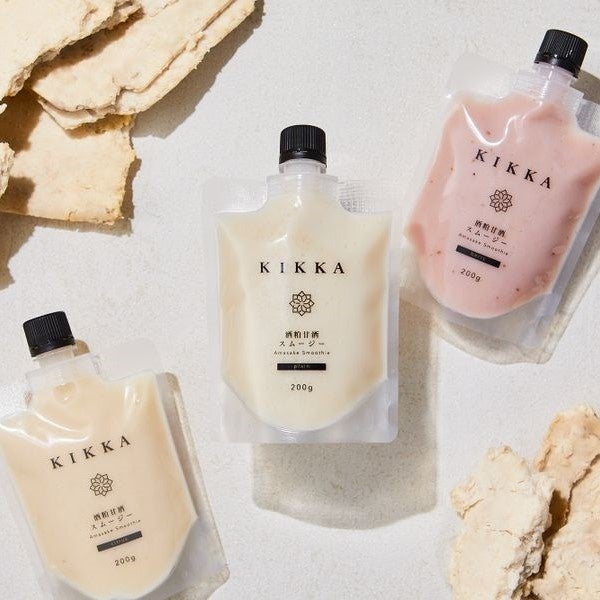 再生させた酒粕で作った砂糖不使用の生甘酒スムージー。