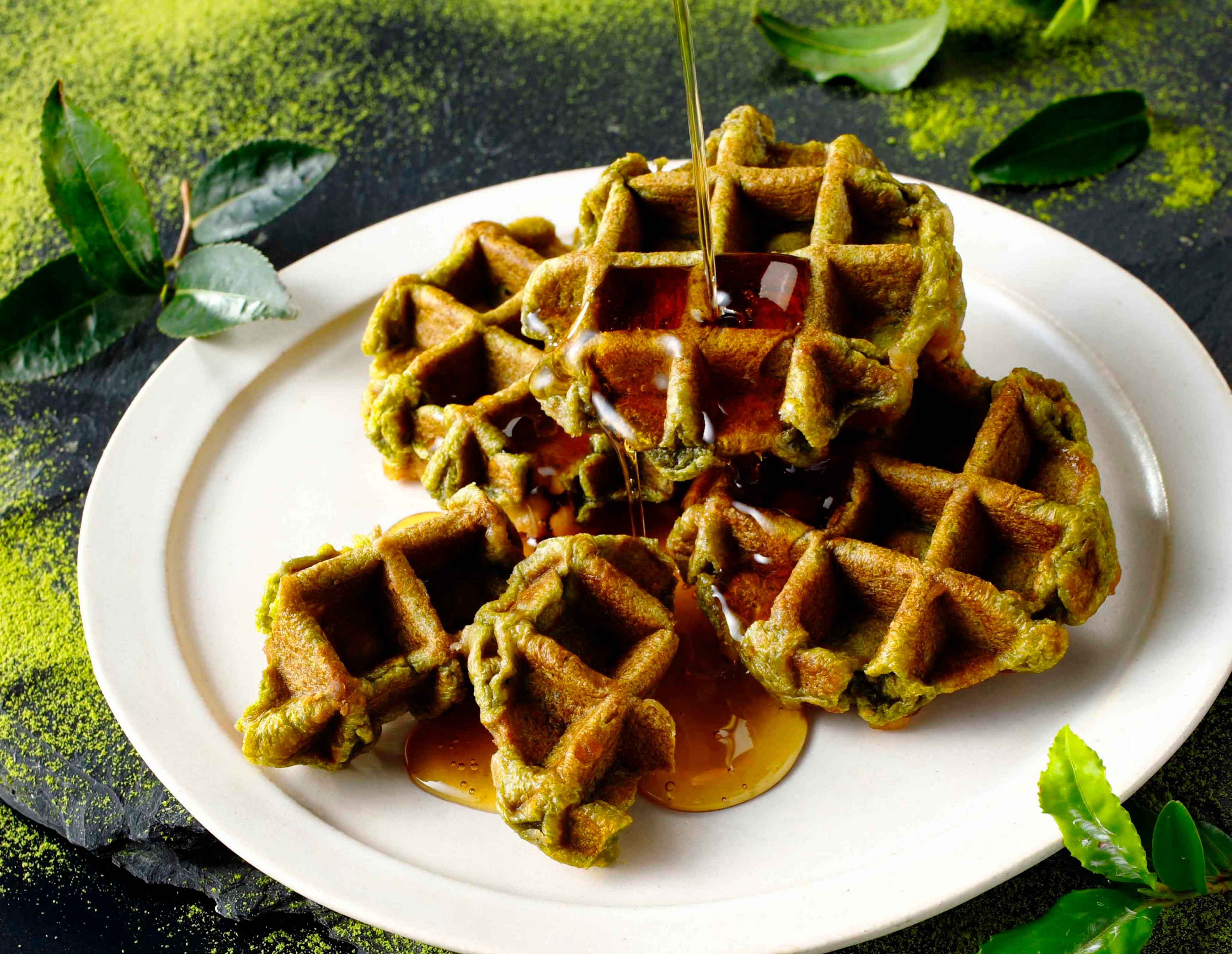 大人気の定番メープルワッフルと、数量限定販売中のベーコン、季節限定の抹茶とあわせ、