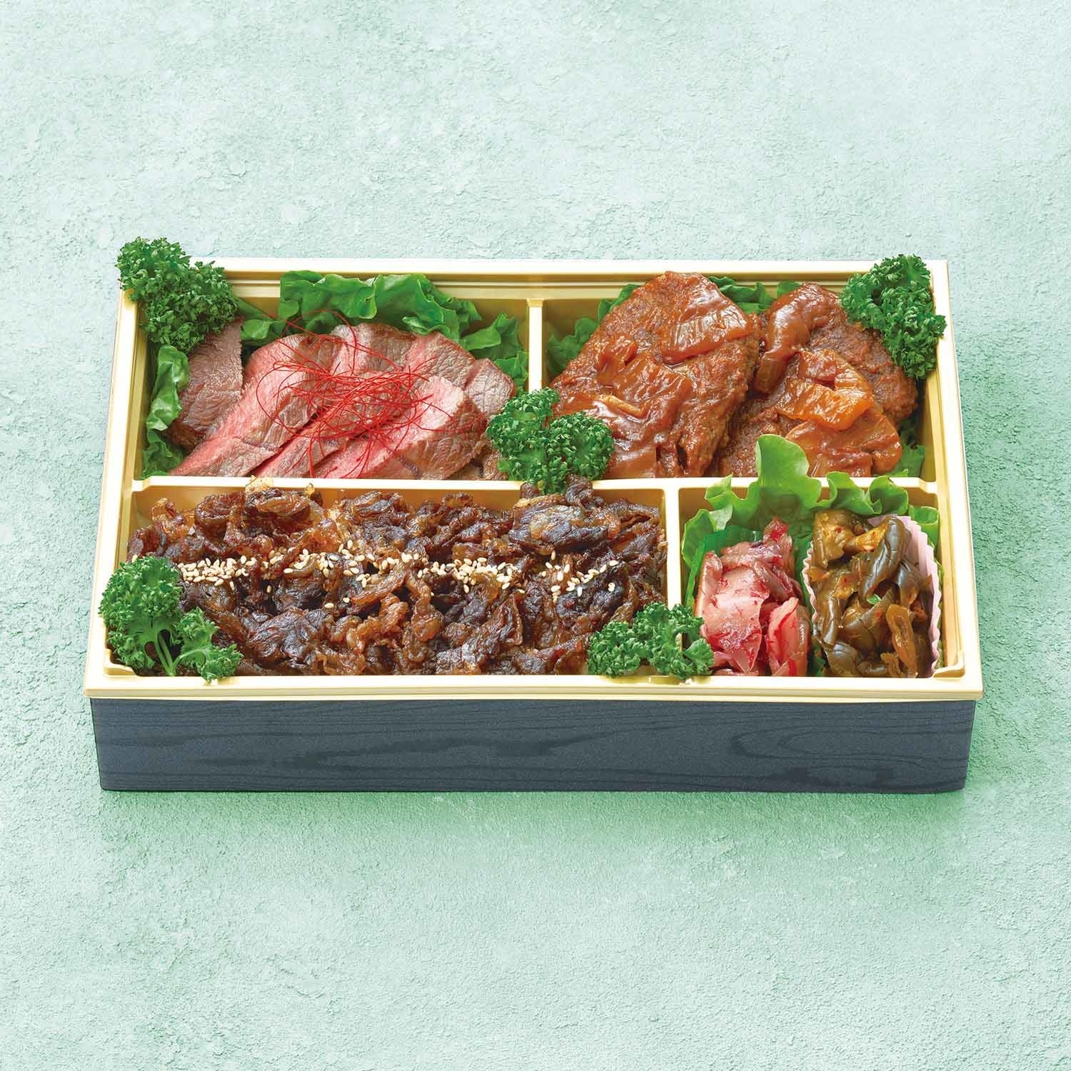 仙台牛のステーキなど3種類の味が楽しめる弁当