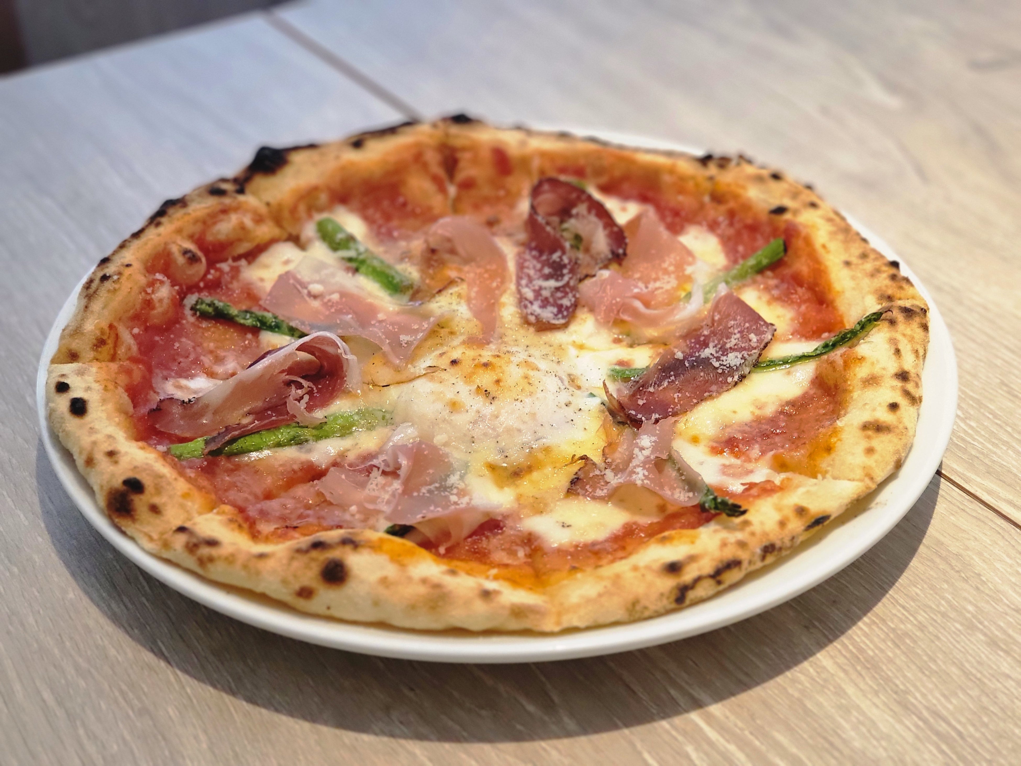 本場のイタリアのビスマルクといえば、トロ〜リ卵と生ハムとグリーンアスパラガスの組み合わせが定番。