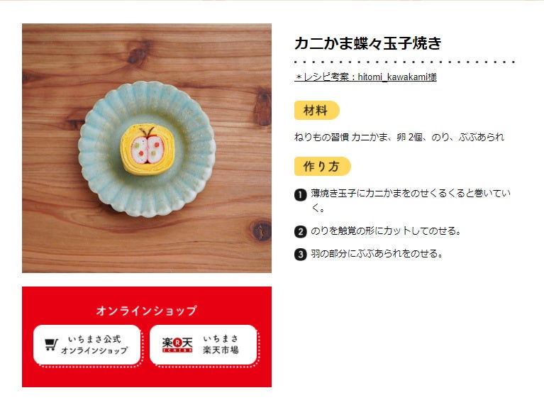 練り製品は、かまぼこやちくわだけでなくたくさんの種類があり、レシピ次第で和食にも洋食にもマッチします。冷蔵庫にあれば安心の、食卓で幅広く活躍する食品です。一方で、一般家庭における練り製品の活用範囲はまだまだ限定的だと感じています。そこで、練り製品は“もっと自由で”“もっと楽しい”ということを多くの方にお伝えするため、練り製品の飾り切りで様々なキャラクターやモチーフを表現した“ねりデコ”を開発し、これまで 140品以上の“ねりデコ”レシピ動画を、いちまさ(一正蒲鉾)HP で公開してきました。