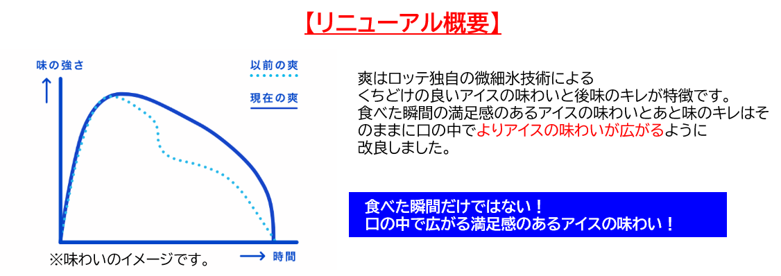 - 食べた瞬間に感じるアイスの満足感のある味わいと、微細氷が口の中を洗い流すことで生まれるすっきりとした後味が特長です。