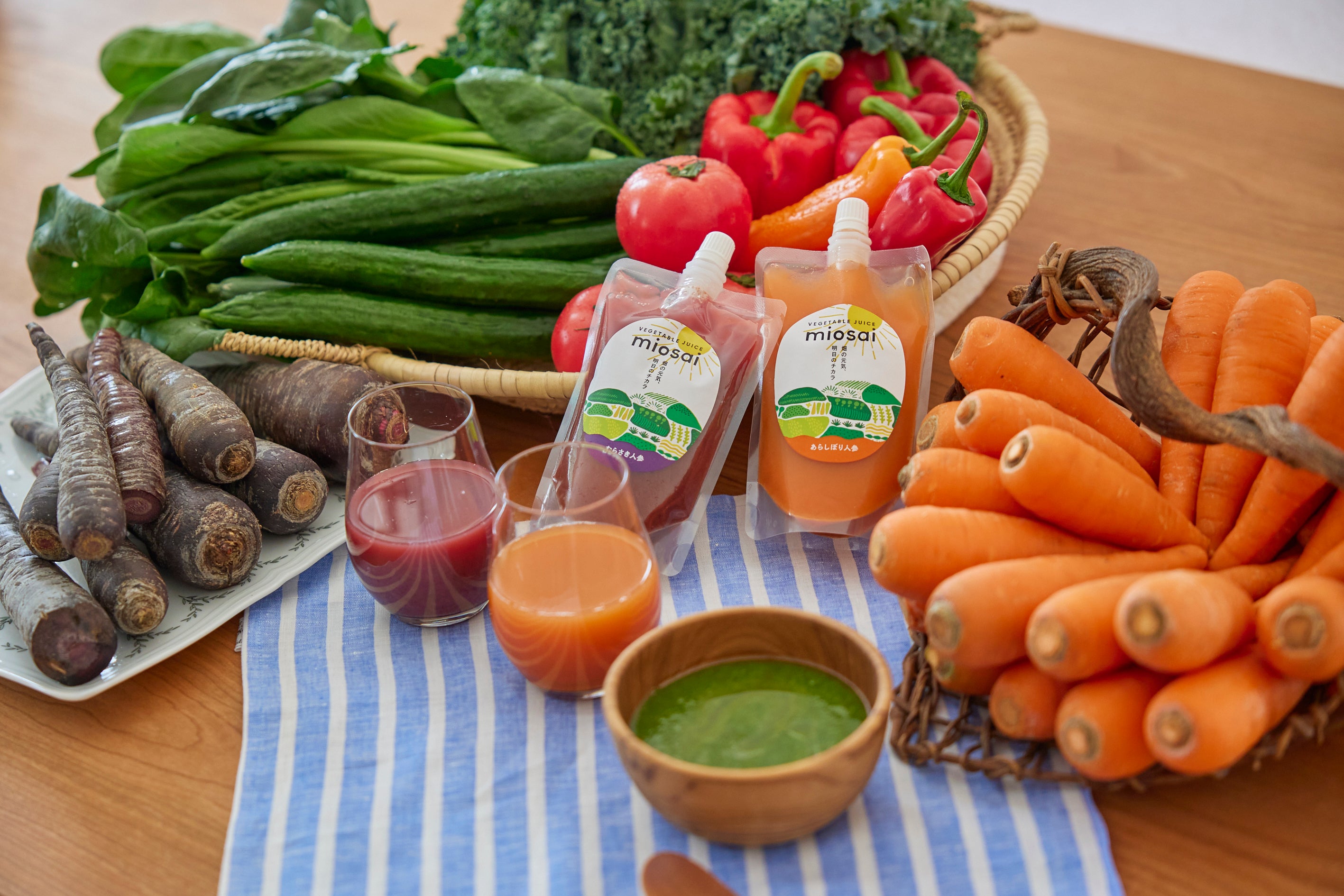 角井食品株式会社(本社:京都府宇治市、代表取締役:角井美穂)は、国産厳選野菜のみを使用した「miosai(以下、ミオサイ)野菜ジュース」をミオサイの日である2022年3月31日(木)より予約受付開始いたしました。今回発売するのは、微生物を用いた栽培方法で育てた北海道は原谷農園の人参を使用した人参ジュースを始め、5種類の国産厳選野菜のジュース。独自の生産・殺菌方法で今までにない、野菜や果物の味や香りを楽しめる、栄養価の高い野菜ジュースを発売いたします。