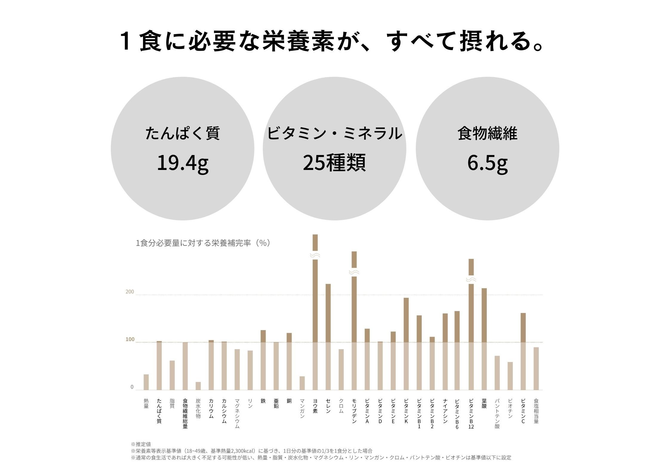 1) 1食に必要な31種類すべての栄養素が摂れる